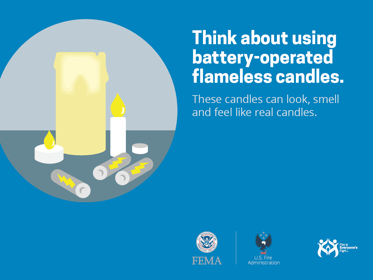 • Blow out all candles when you leave the room or go to bed. Avoid the use of candles in the bedroom and other areas where people may fall asleep.