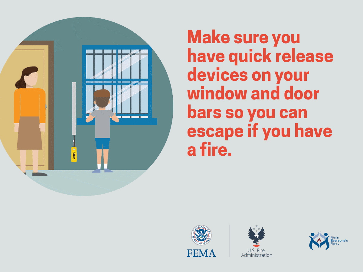 Fire can spread rapidly through your home, leaving you as little as one or two minutes to escape safely once the alarm sounds. Pull together everyone in your household and make a plan. Walk through your home and inspect all possible exits and escape routes. Households with children should consider drawing a floor plan of your home, marking two ways out of each room, including windows and doors. Also, mark the location of each smoke alarm. Here are some tips for helping you with your home fire escape plan!